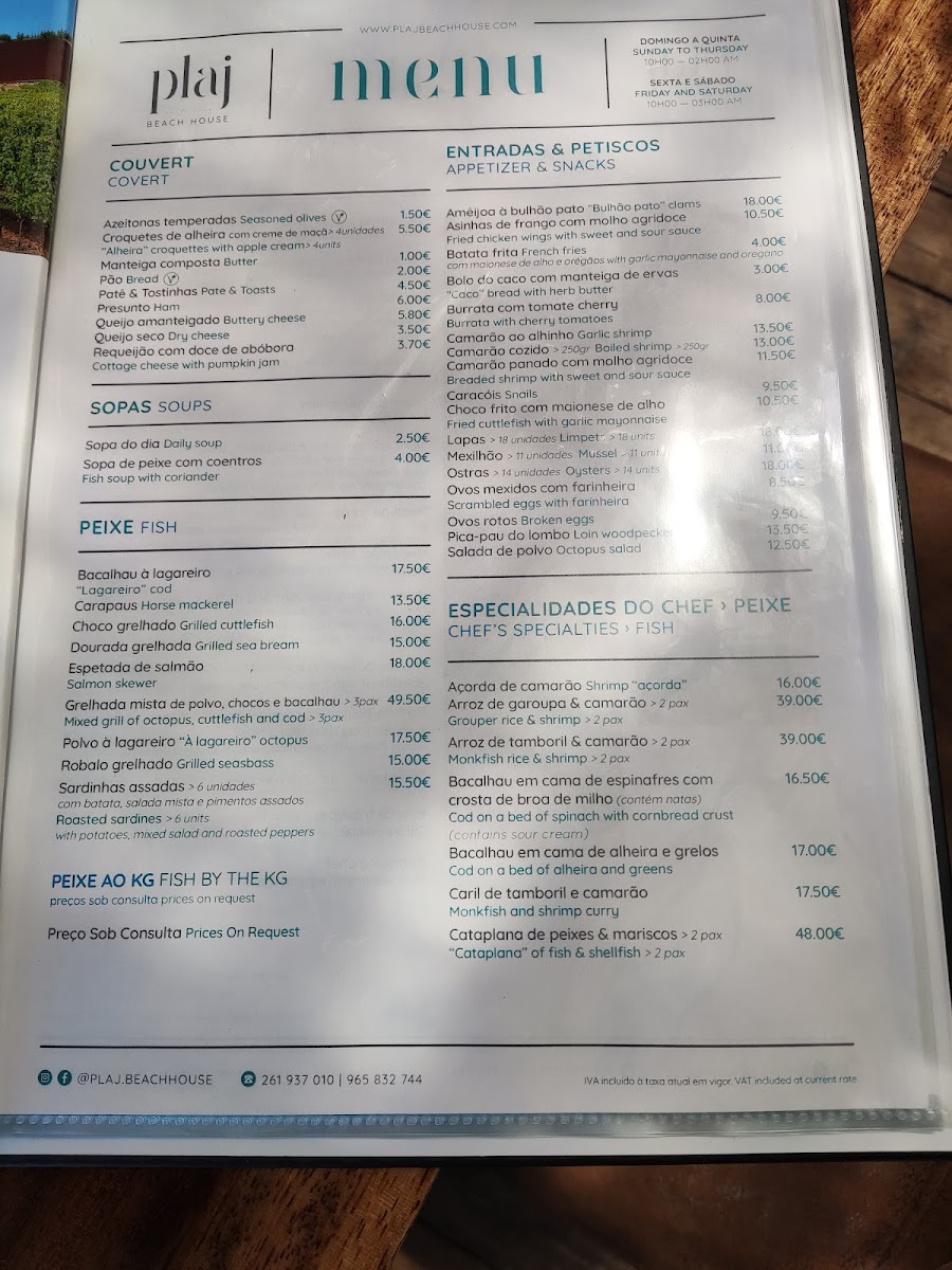 Introducing the vibrant menu at Plaj Beach House, located along the stunning Praia da Fisica in Santa Cruz, Portugal. This beachside gem captures the essence of coastal dining, reflecting the flavors of the sea. The menu offers an array of expertly crafted dishes, starting with the acclaimed garlic shrimp and moving to the rich and flavorful seafood rice, perfect for sharing. Guests rave about the black pork ribs, which are masterfully seasoned and tender.
